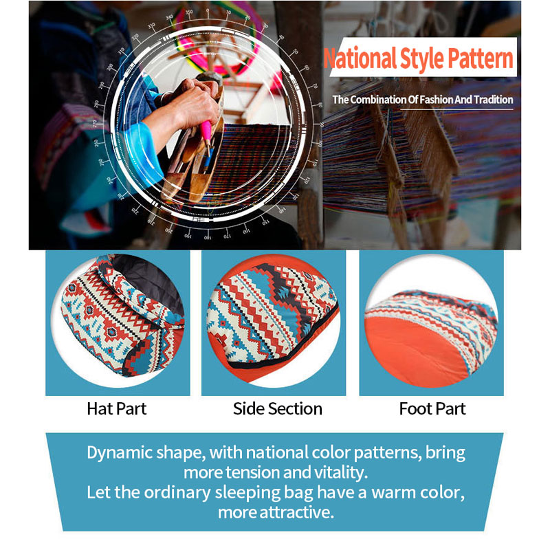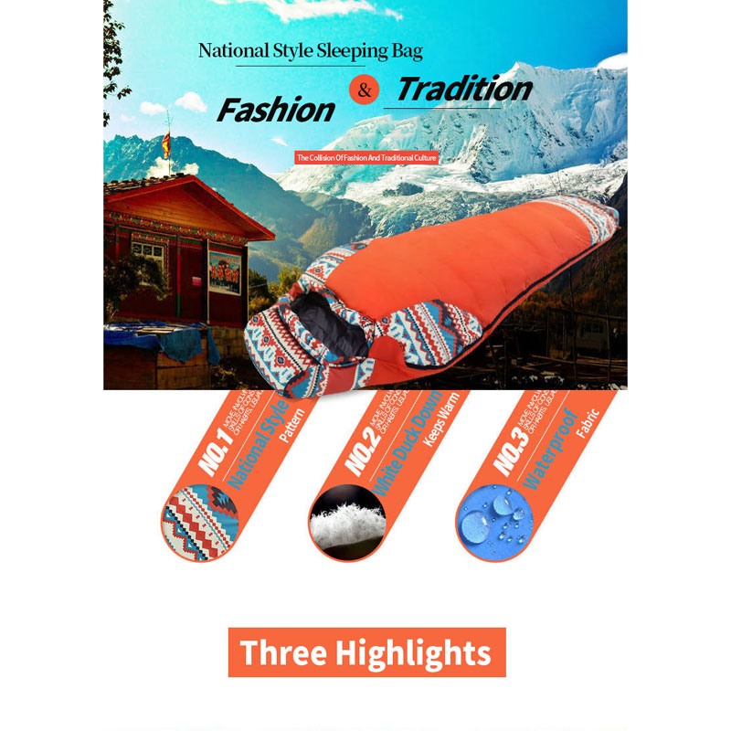 1.The unique thread wewing design makes the down not easy to move , ensuring that the Mummy Sleeping Bag stays warm all night , it is more suithable for outdoor use.